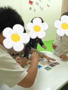 職員が絵カードを見せて、その同じ絵柄のカードを探すゲームをしました!🙌