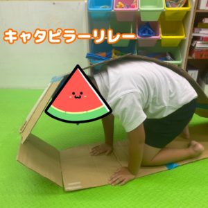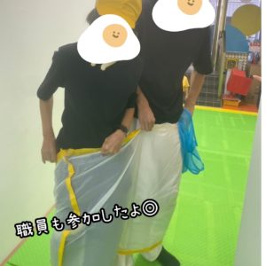種目は、キャタピラリレー、玉入れ、デカパンツリレー《パンツは、ゴミ袋でズボン仕様》、綱引き、積み木リレー《高く積み上げた方が勝ち》、大玉転がしをしました❗❗❗