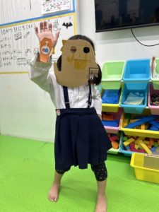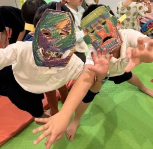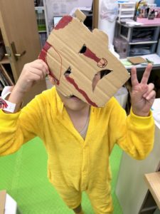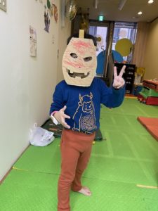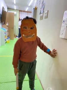 みんな上手に色塗りしてお面を作りました👻