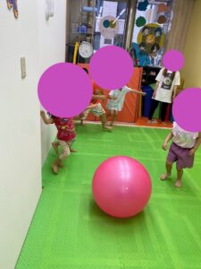 マック体操で行っている、サーキットをしたり(かえる跳び、グーパー)