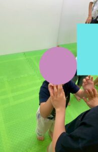 ミラーゲームでは、対面した子と同じ動きをするゲームです😙