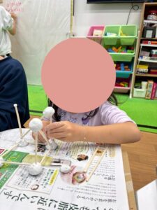 粘土、ボンド、割り箸を使って家の模型を作る